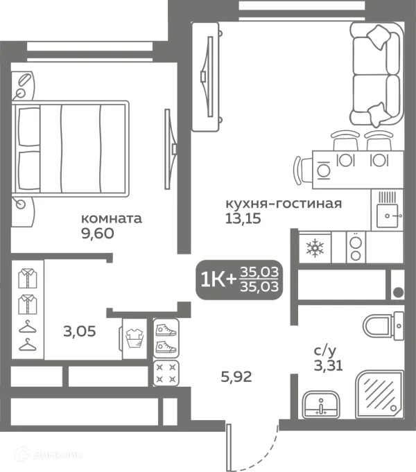 1 комн. квартира в Тюмени в ипотеку от 39 749 руб/месяц