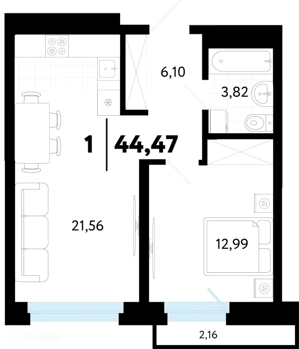 1 комн. квартира в Тюмени в ипотеку от 42 845 руб/месяц