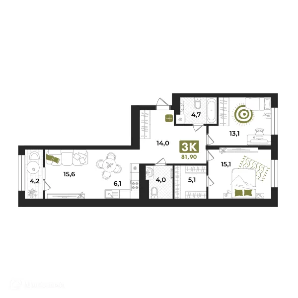 3 комн. квартира в Тюмени в ипотеку от 100 814 руб/месяц