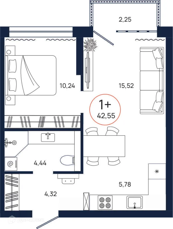 1 комн. квартира в Тюмени в ипотеку от 40 779 руб/месяц