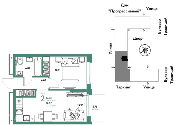 2 комн. квартира в Тюмени в ипотеку от 51 598 руб/месяц