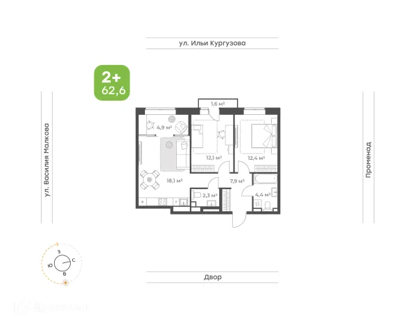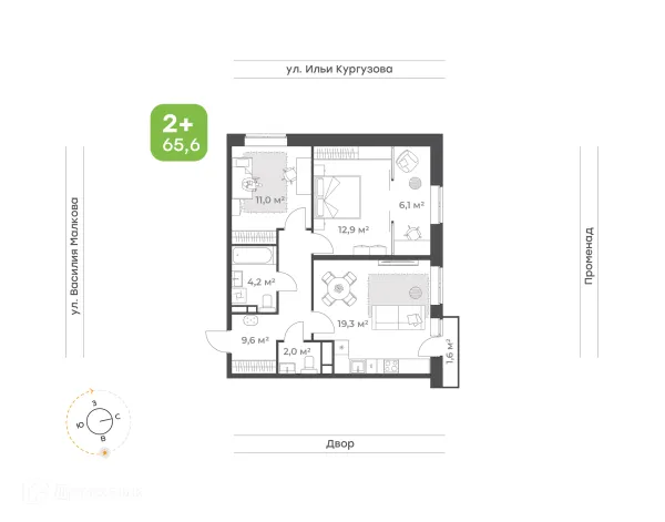 2 комн. квартира в Тюмени в ипотеку от 67 689 руб/месяц