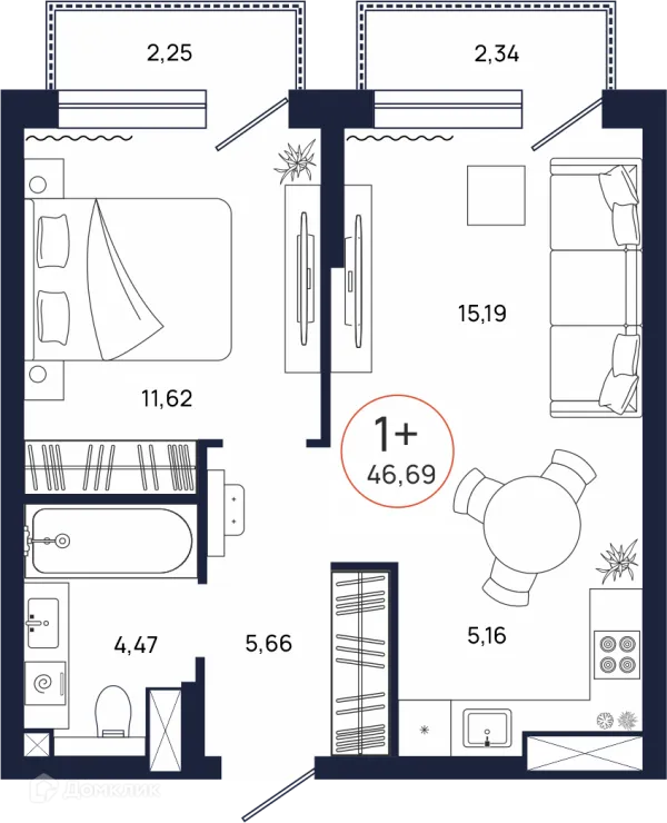 1 комн. квартира в Тюмени в ипотеку от 48 376 руб/месяц