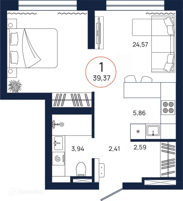1 комн. квартира в Тюмени в ипотеку от 58 976 руб/месяц
