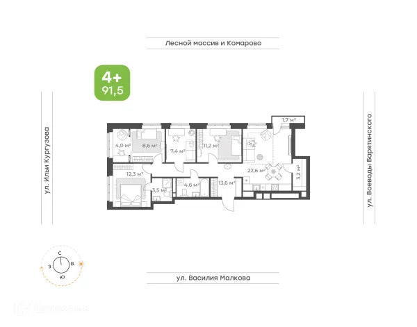 5 комн. квартира в Тюмени в ипотеку от 77 461 руб/месяц