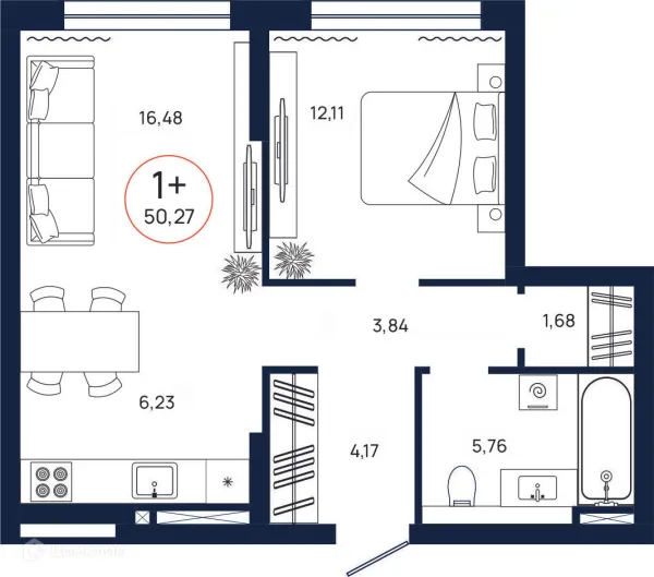 1 комн. квартира в Тюмени в ипотеку от 50 306 руб/месяц