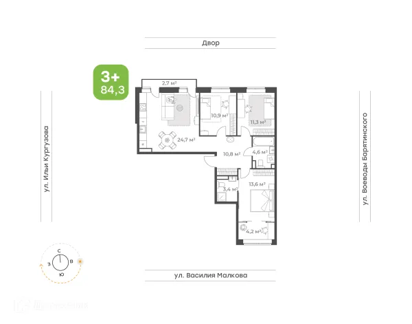 3 комн. квартира в Тюмени в ипотеку от 55 442 руб/месяц