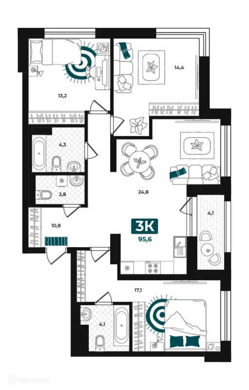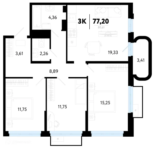 3 комн. квартира в Тюмени в ипотеку от 69 777 руб/месяц