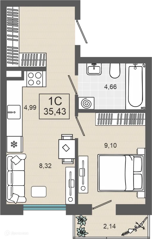 1 комн. квартира в Тюмени в ипотеку от 54 799 руб/месяц