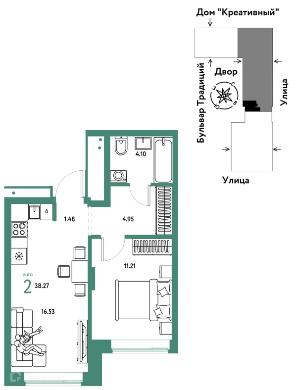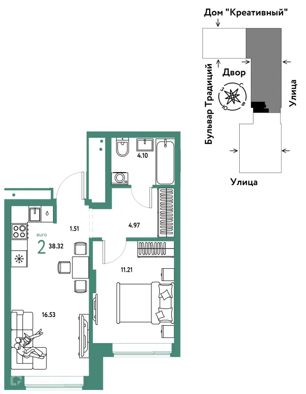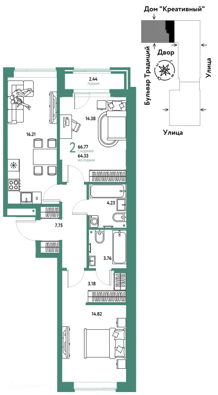2 комн. квартира в Тюмени в ипотеку от 44 145 руб/месяц