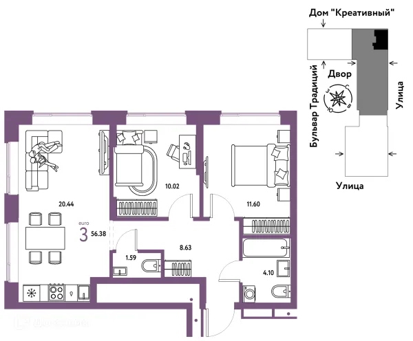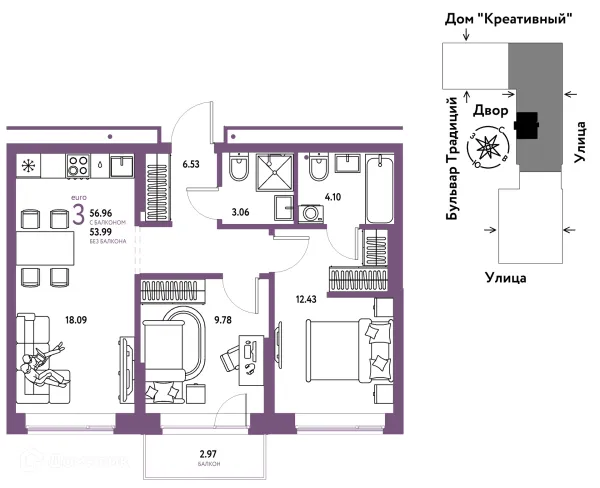 3 комн. квартира в Тюмени в ипотеку от 56 277 руб/месяц