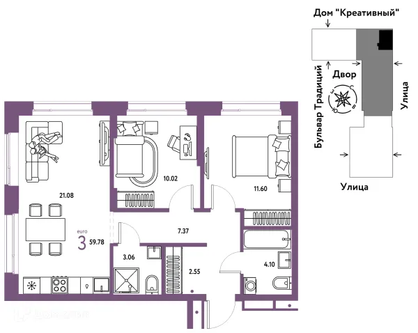 3 комн. квартира в Тюмени в ипотеку от 57 060 руб/месяц