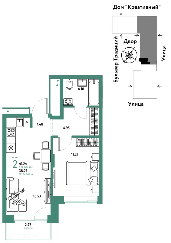 2 комн. квартира в Тюмени в ипотеку от 41 797 руб/месяц