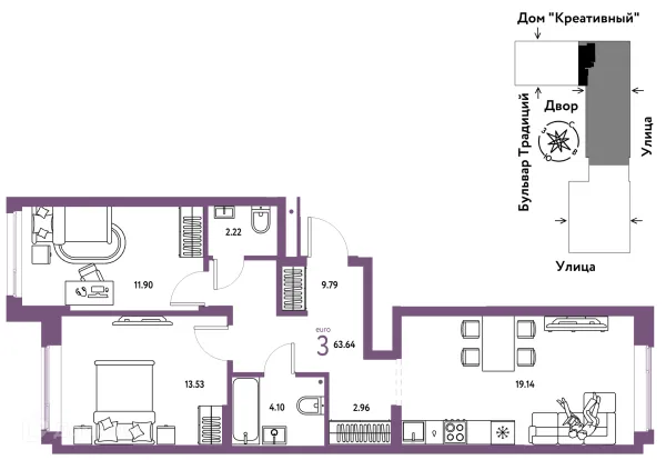3 комн. квартира в Тюмени в ипотеку от 55 494 руб/месяц