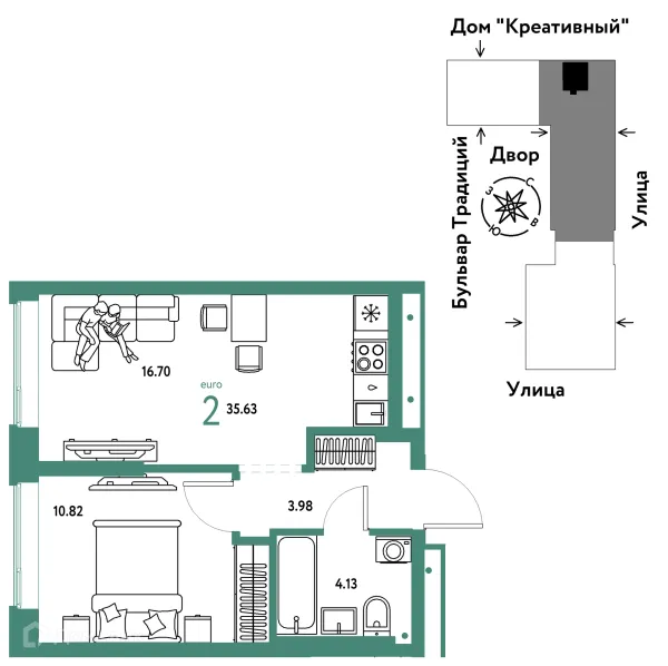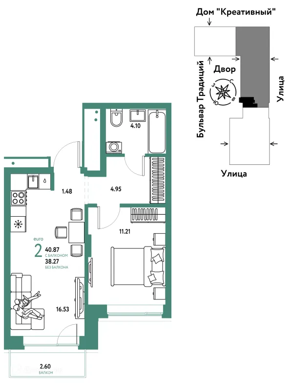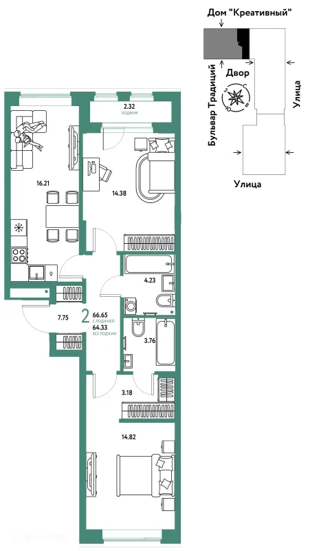 2 комн. квартира в Тюмени в ипотеку от 60 582 руб/месяц