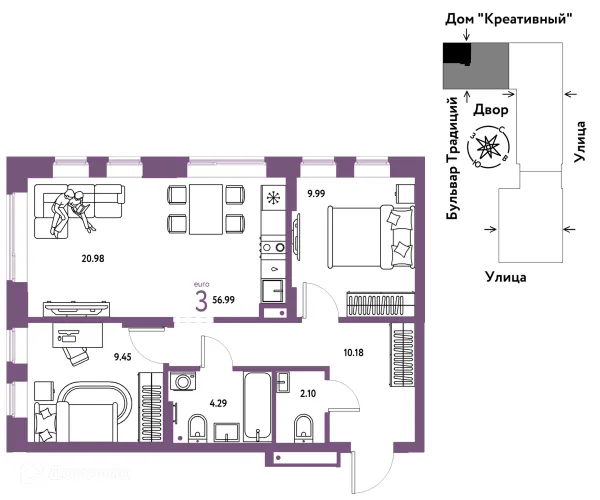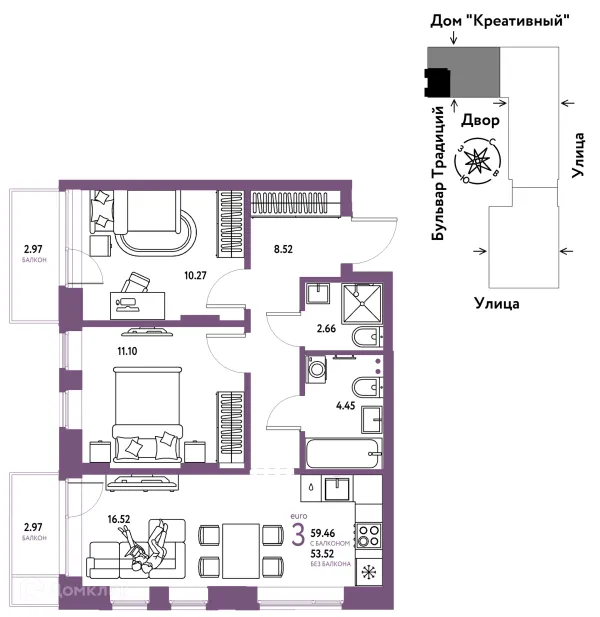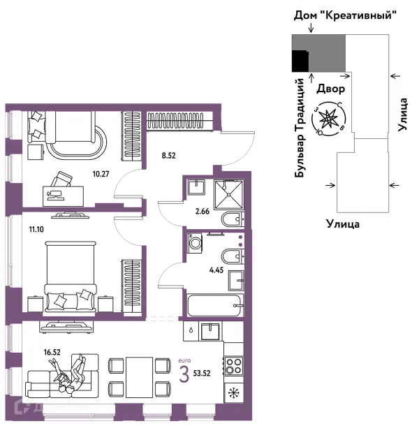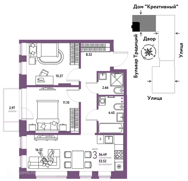 3 комн. квартира в Тюмени в ипотеку от 56 277 руб/месяц