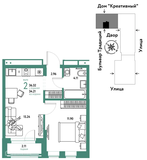 2 комн. квартира в Тюмени в ипотеку от 43 362 руб/месяц