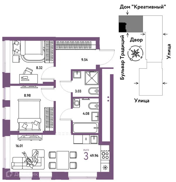 3 комн. квартира в Тюмени в ипотеку от 55 494 руб/месяц