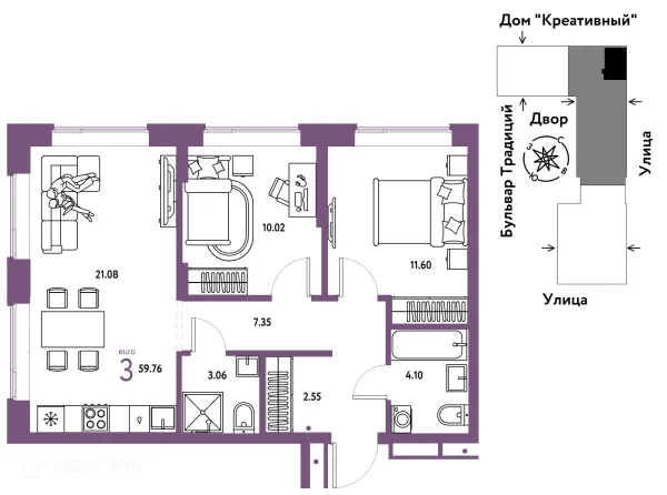 3 комн. квартира в Тюмени в ипотеку от 58 625 руб/месяц