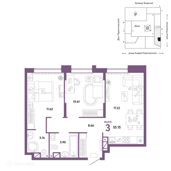 3 комн. квартира в Тюмени в ипотеку от 63 869 руб/месяц