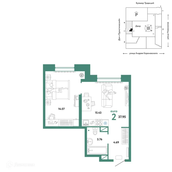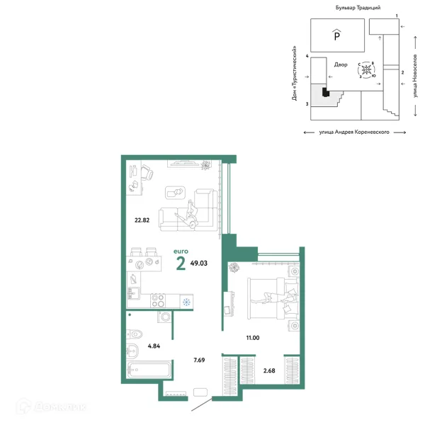 2 комн. квартира в Тюмени в ипотеку от 48 215 руб/месяц