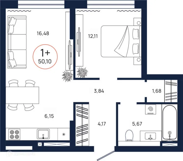 1 комн. квартира в Тюмени в ипотеку от 51 652 руб/месяц