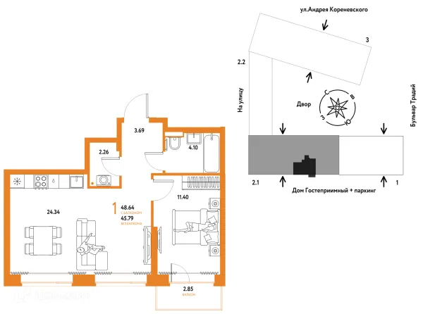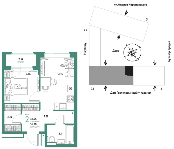 2 комн. квартира в Тюмени в ипотеку от 48 215 руб/месяц