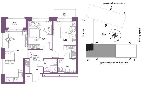 3 комн. квартира в Тюмени в ипотеку от 63 243 руб/месяц