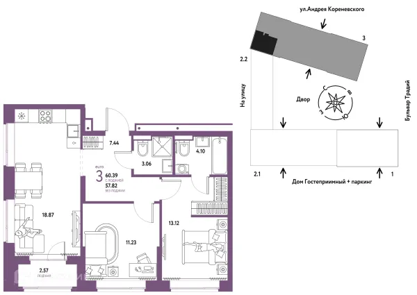 3 комн. квартира в Тюмени в ипотеку от 57 373 руб/месяц