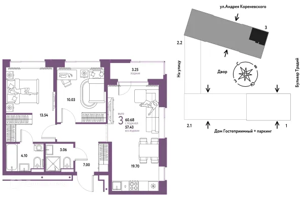 3 комн. квартира в Тюмени в ипотеку от 60 112 руб/месяц