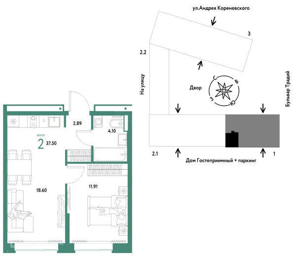 2 комн. квартира в Тюмени в ипотеку от 42 736 руб/месяц
