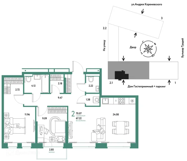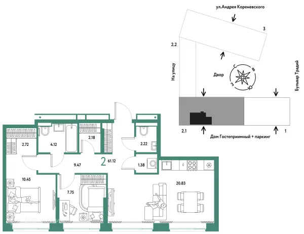 2 комн. квартира в Тюмени в ипотеку от 55 807 руб/месяц