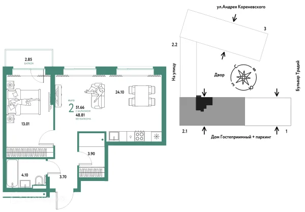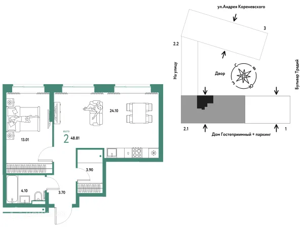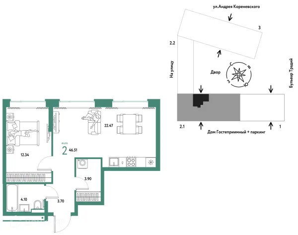 2 комн. квартира в Тюмени в ипотеку от 41 953 руб/месяц