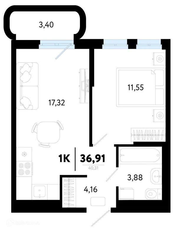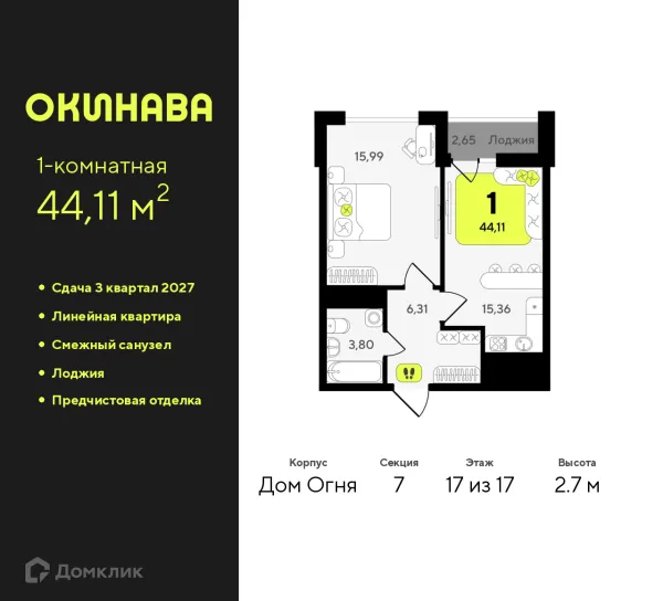 1 комн. квартира в Тюмени в ипотеку от 55 303 руб/месяц