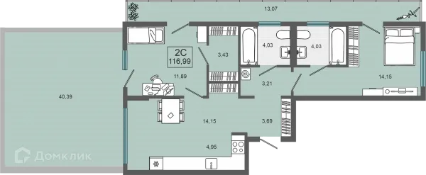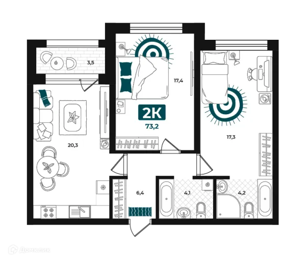 2 комн. квартира в Тюмени в ипотеку от 73 090 руб/месяц