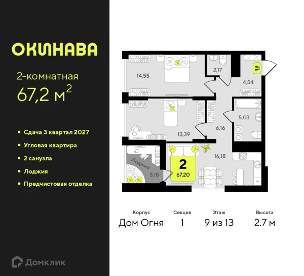 2 комн. квартира в Тюмени в ипотеку от 73 306 руб/месяц