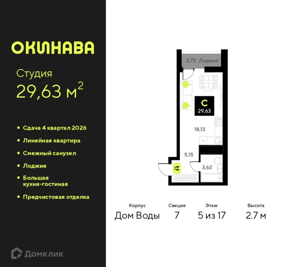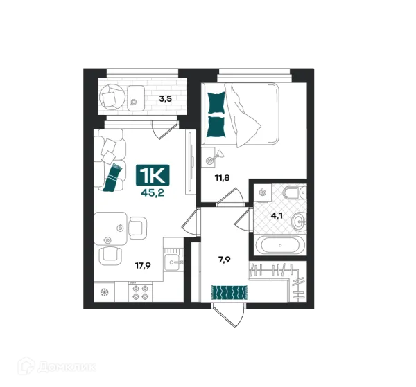 1 комн. квартира в Тюмени в ипотеку от 34 492 руб/месяц