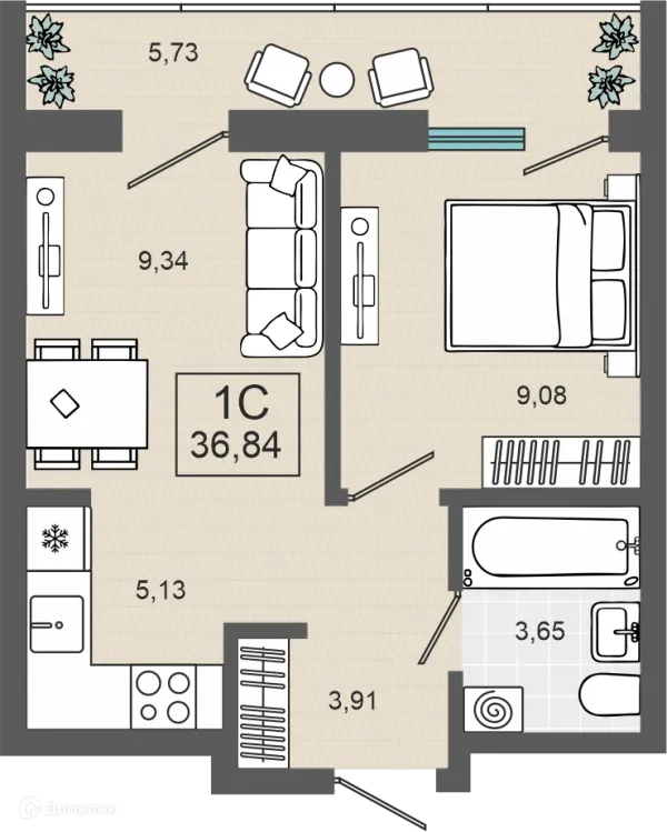 1 комн. квартира в Тюмени в ипотеку от 37 373 руб/месяц