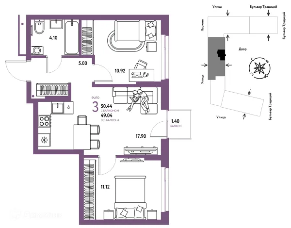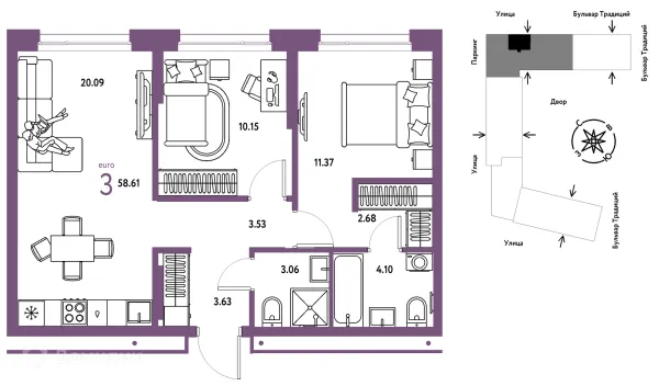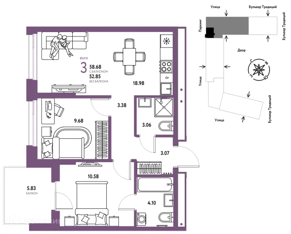 3 комн. квартира в Тюмени в ипотеку от 58 390 руб/месяц