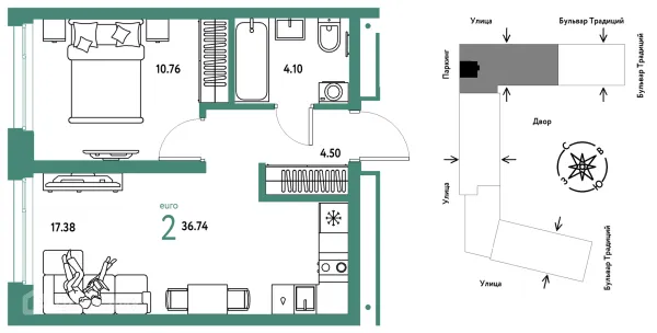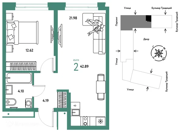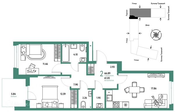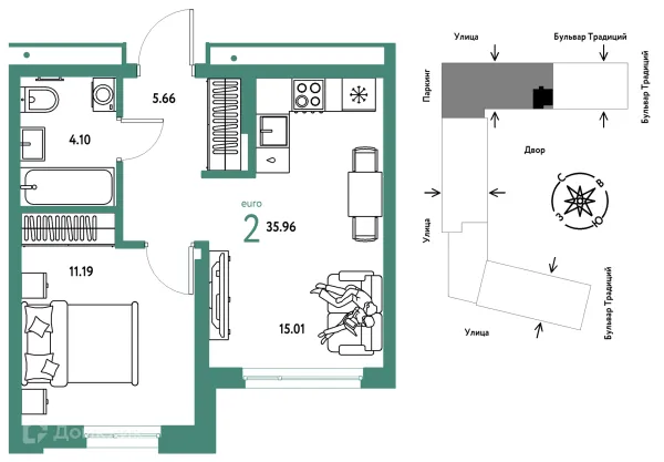 2 комн. квартира в Тюмени в ипотеку от 44 145 руб/месяц