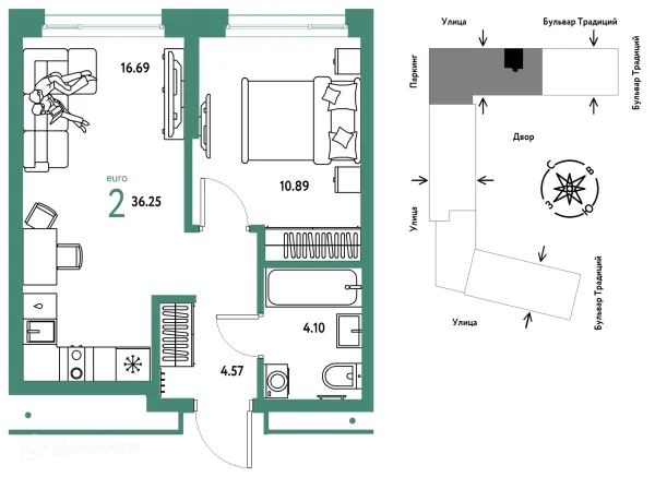 2 комн. квартира в Тюмени в ипотеку от 62 304 руб/месяц