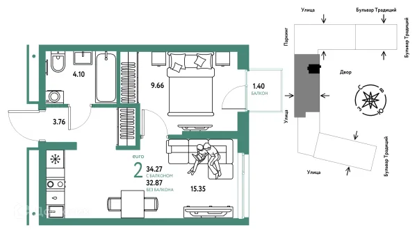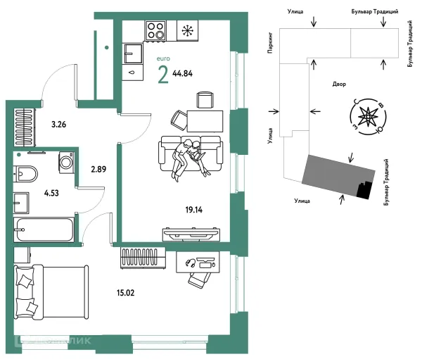 2 комн. квартира в Тюмени в ипотеку от 46 493 руб/месяц
