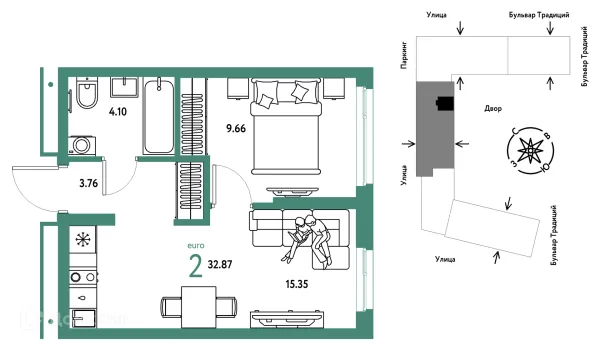 2 комн. квартира в Тюмени в ипотеку от 41 797 руб/месяц