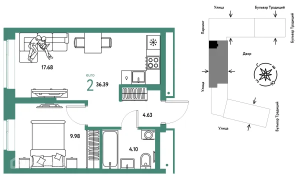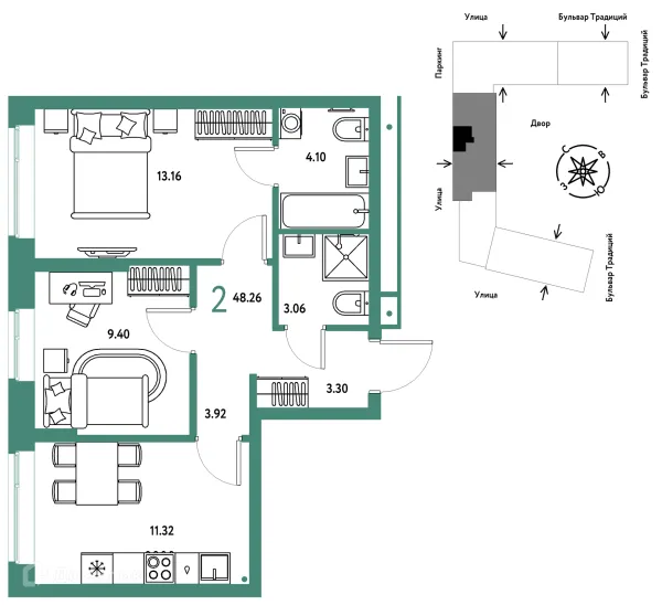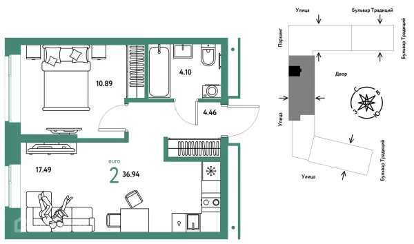 2 комн. квартира в Тюмени в ипотеку от 42 579 руб/месяц