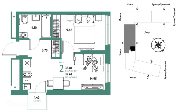 2 комн. квартира в Тюмени в ипотеку от 41 014 руб/месяц