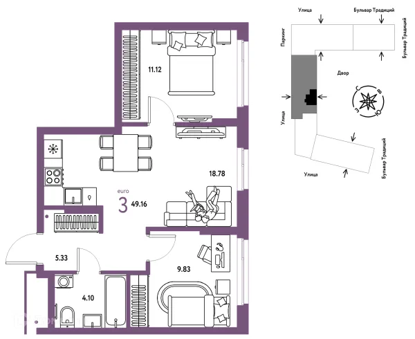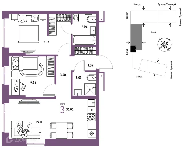 3 комн. квартира в Тюмени в ипотеку от 56 433 руб/месяц