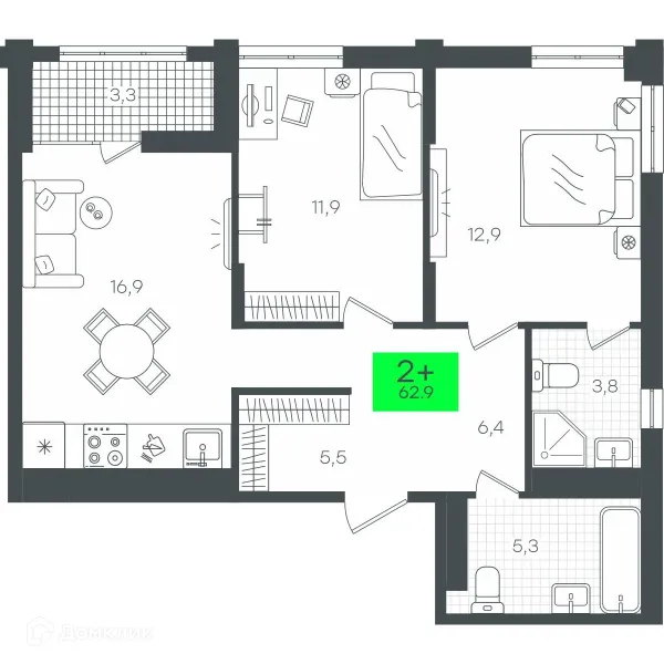 2 комн. квартира в Тюмени в ипотеку от 63 700 руб/месяц