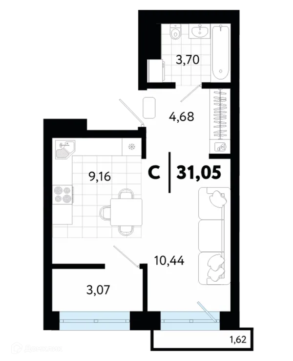 1 комн. квартира в Тюмени в ипотеку от 31 252 руб/месяц