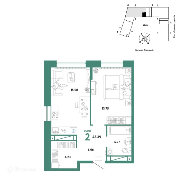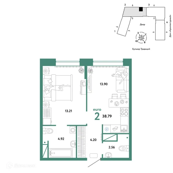 2 комн. квартира в Тюмени в ипотеку от 42 736 руб/месяц