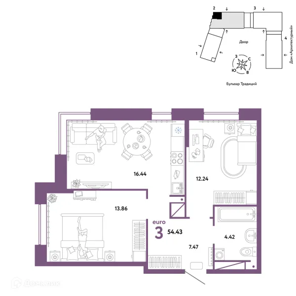 3 комн. квартира в Тюмени в ипотеку от 56 042 руб/месяц
